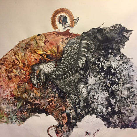 El Proyecto de Arte “Animales Monumentales” en técnica de collage y dibujo en tinta se presenta una panorámica de colores y luces inspirada en vitrales góticos en formato de luneta, a modo de arco antiguo, retomando estilos del Medioevo y el Renacimiento.